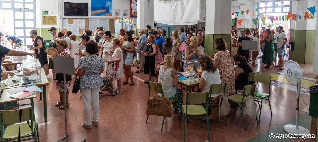 La Región de Murcia, según el balance de participación ofrecido a las 14.20 horas, lleva una participación en las Elecciones Generales del 44,24% (469.830 personas han depositado la papeleta), lo que supone un 5,23% más que en 2019 y un 3,7% más que la media nacional en esta jornada, que es del 40,47%.