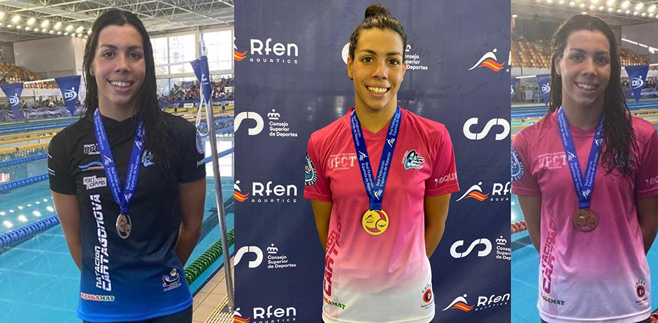 La joven de Alumbres ha sido campeona en la prueba de 800 metros libres femeninos (17 años), subcampeona en los 1.500 metros libres y tercera en los 400 metros, dentro de un CX Campeonato de España absoluto de verano P50 Open - Astralpool - XLIV Campeonato de España júnior de verano P50 celebrados en Málaga en su club, el Club Natación Cartagonova-Cartagena, ha conquistado 6 medallas, siendo los otros dos que subieron a los podios Alejandro Puebla, en dos ocasiones, y Alfonso Franco. El equipo también batió 3 récords regionales.