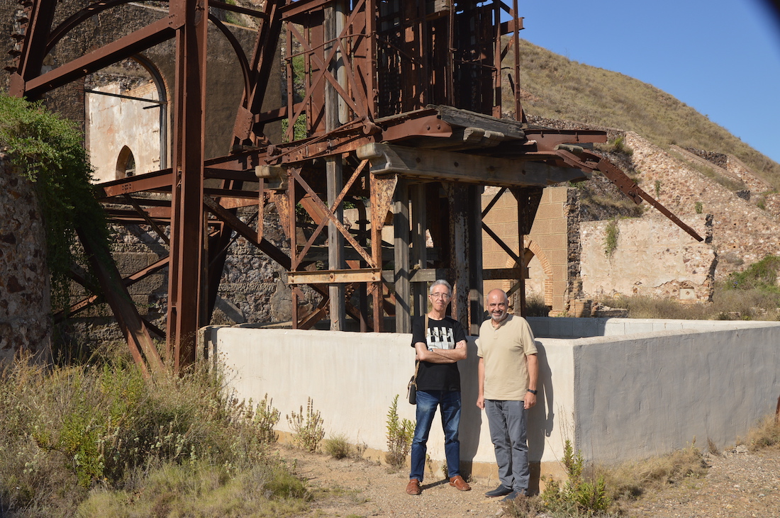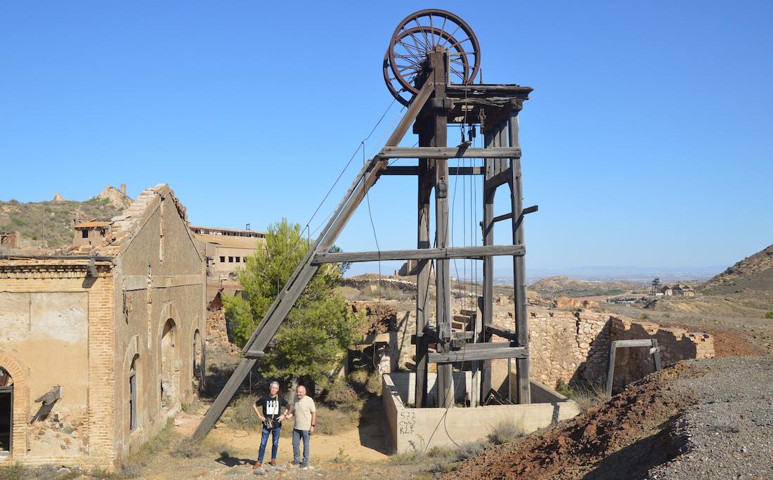 Imagen de García Martín (izquierda del lector) y Rosique Campoy en el castillete del complejo minero del Cabezo Rajao