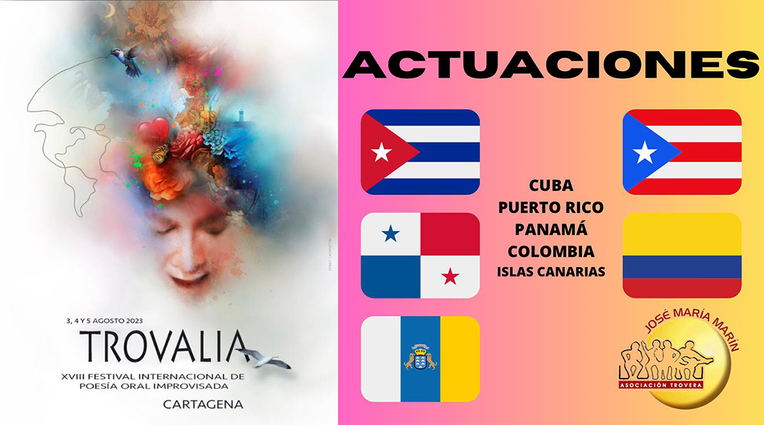 La décimo octava edición del festival internacional de poesía oral improvisada de Cartagena, que reune a artistas de seis naciones, celebra sus tres jornadas desde esta tarde en la plaza del Ayuntamiento hasta el sábado en Mar de Cristal, haciendo también escala en Isla Plana. Presentaciones de libros enriquecen esta edición.