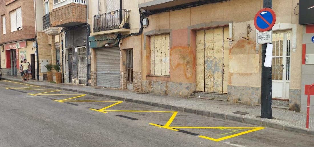 A partir del 14 de agosto, el autobús, en dirección a Lo Campano, transitará por paseo de Delicias y calles Francisco Jorquera, Bardiza y Cuatro Caminos. En la foto una de las paradas repintadas y para la que se espera, al igual para las restantes, que se respete la señalización por parte de conductores de otros vehículos.