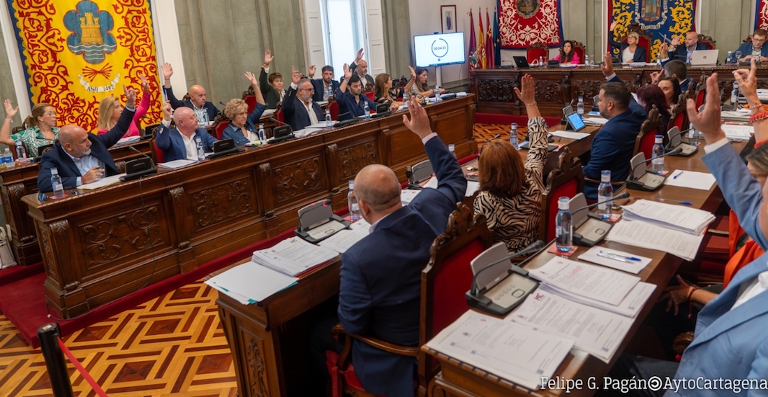 El pleno de la corporación municipal ha vuelto del verano con un centenar de iniciativas a debatir a lo largo de la jornada de hoy, sesión que comenzaba con una declaración institucional manifestando la oposición del pleno a que se emprendan actuaciones de explotación minera en la zona Oeste de Cartagena, además de declarar su intención de proteger contra la actividad minera la totalidad del ámbito propuesto para las excavaciones mediante las correspondientes figuras urbanísticas en la revisión del Plan General de Ordenación Urbana. Igualmente, todos los grupos también han votado a favor recuperar la atención personal sin ser obligatoria la cita previa.