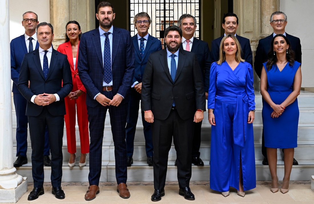 En el acto tomaron posesión José Ángel Antelo (Vicepresidencia, Interior, Emergencias y Ordenación del Territorio); Concepción Ruiz Caballero (consejera de Política Social, Familias e Igualdad); Marcos Ortuño (Presidencia, Portavocía y Acción Exterior); Sara Rubira (Agua, Agricultura, Ganadería y Pesca); Luis Alberto Marín (Economía, Hacienda y Empresa); Juan María Vázquez (Medio Ambiente, Universidades, Investigación y Mar Menor); Carmen María Conesa (Turismo, Cultura, Juventud y Deportes); José Manuel Pancorbo (Fomento e Infraestructuras); Víctor Marín (Educación, Formación Profesional y Empleo); y Juan José Pedreño (Salud).