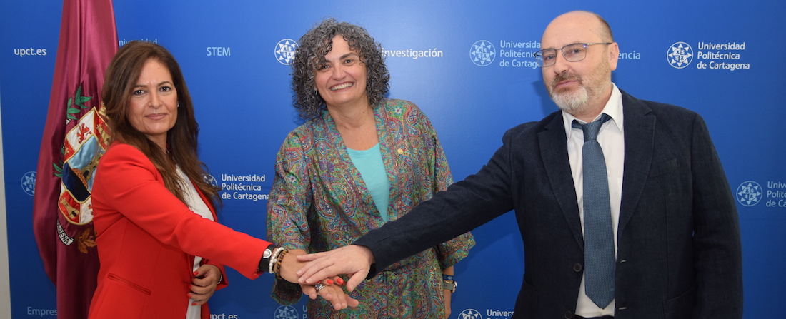 El acuerdo ha sido ratificado por la rectora de la UPCT, Beatriz Miguel, y la decana presidenta del COGITARM, Lola Martínez, acompañadas del director de la Escuela Técnica Superior de Ingeniería Agronómica (ETSIA), José Miguel Molina.