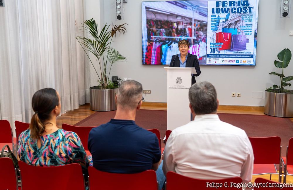La Plaza de España es el escenario de la décimo tercera 'Feria Low Cost', anteriormente llamada 'Feria Outlet'. El evento, que tendrá lugar del 12 al 15 de octubre, cuenta con la ayuda de las cinco asociaciones de comercio de Cartagena como ACOPEC, área comercial San Fernando, Amep, Centro Comercial Abierto, área comercial La Milla y El Cenit para su organización. Participarán cuarenta y un establecimientos con descuentos en sus productos del 20 al 70 por ciento, siendo el horario de mañana y tarde.