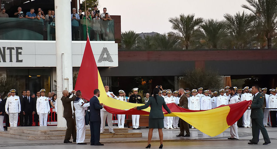 Luis Godínez ofrece a los lectores un reportaje gráfico del acto que tuvo lugar ayer tarde en el puerto de Cartagena con la participación de una compañía mixta de honores formada por secciones del Regimiento de Artillería Antiaérea (RAAA-73) del Ejército de Tierra, de la Academia General del Aire del Ejército del Aire y del Espacio, de la Escuela de Infantería de Marina 'General Albacete y Fuster' del mando de las unidades de la Fuerza de Acción Marítima, de la quinta zona de la Guardia Civil y de la Unidad de Música del Tercio de Levante.