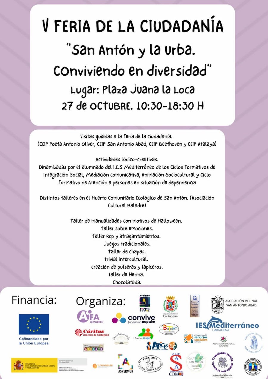 Tras suspenderse hace cinco días por las previsiones climáticas, la quinta edición del encuentro de asociaciones y colectivos de la plaza Juana la Loca se señala para el viernes 27 de 10.30 a 18.30 horas con numerosas actividades.