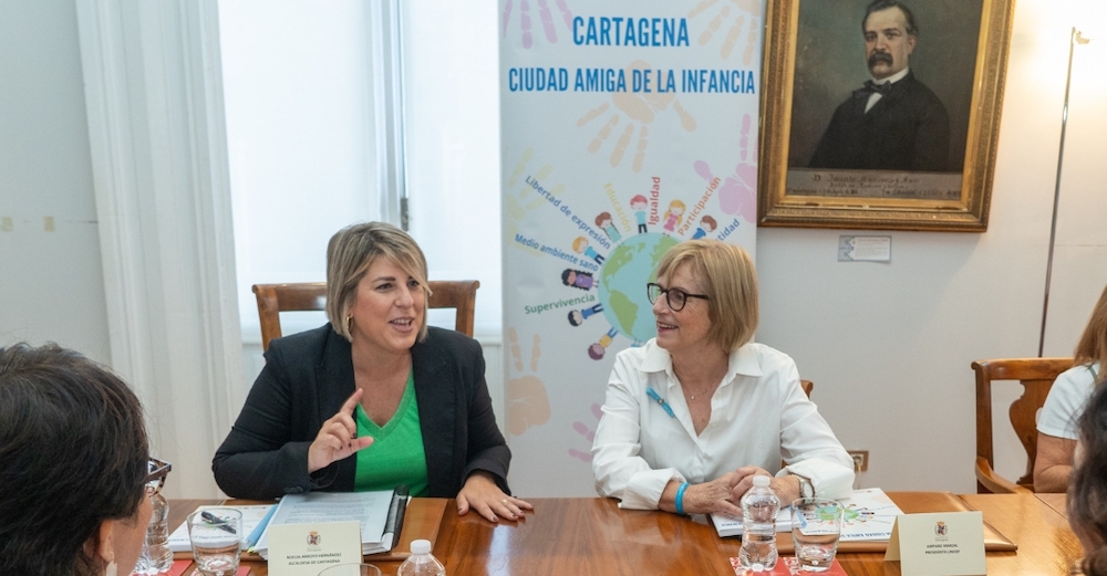 La alcaldesa, Noelia Arroyo, se ha reunido hoy con los responsables de UNICEF en la Región de Murcia, encabezados por su presidenta, Amparo Marzal, para analizar el proceso de renovación y valorar los resultados del anterior Plan 2018-2022. Esta reunión es la primera de una amplia agenda de trabajo que la delegación de UNICEF va a mantener durante todo el día en Cartagena.
