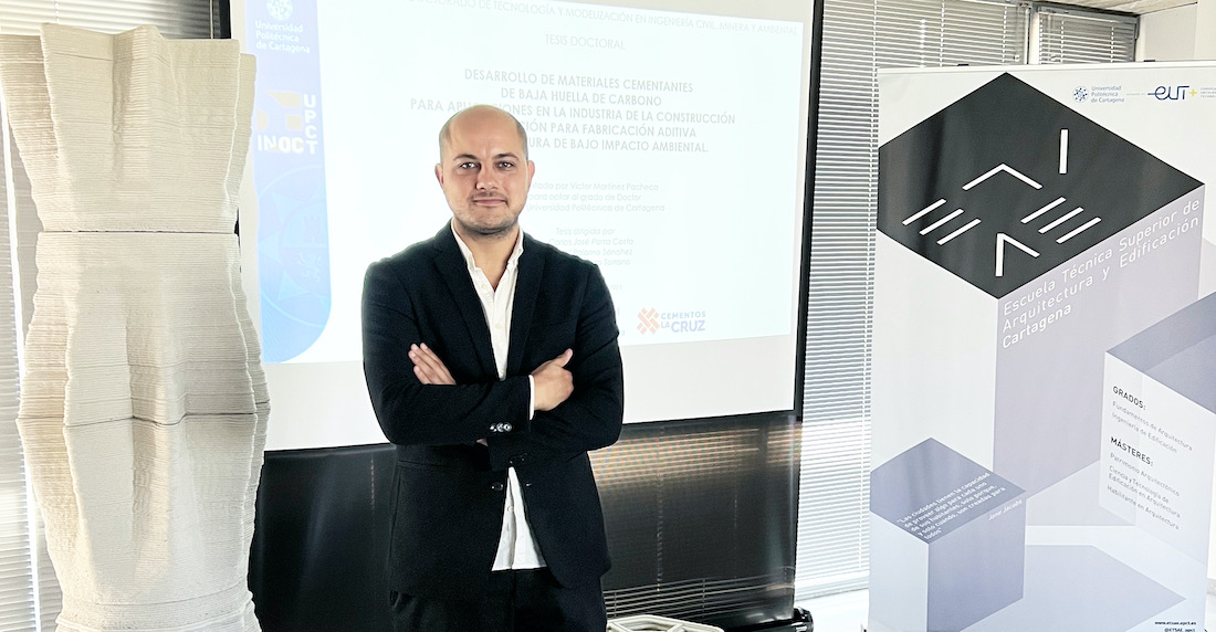 La tesis de Víctor Martínez Pacheco, desarrollada en 'Cementos La Cruz' y en laboratorios de la Universidad Politécnica de Cartagena y el CSIC, propone también utilizar impresión 3D para limitar hasta en un 90% la huella de carbono.