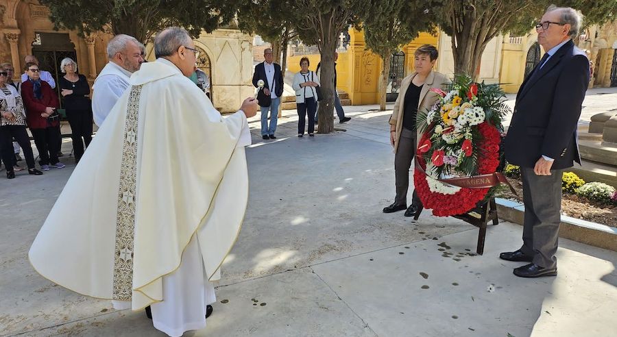 Allí, junto a los miembros de las Juntas de Cementerios asistieron a la misa en la capilla del camposanto, seguida por un responso que concluyó depositando una corona de flores por los cartageneros que allí descansan.