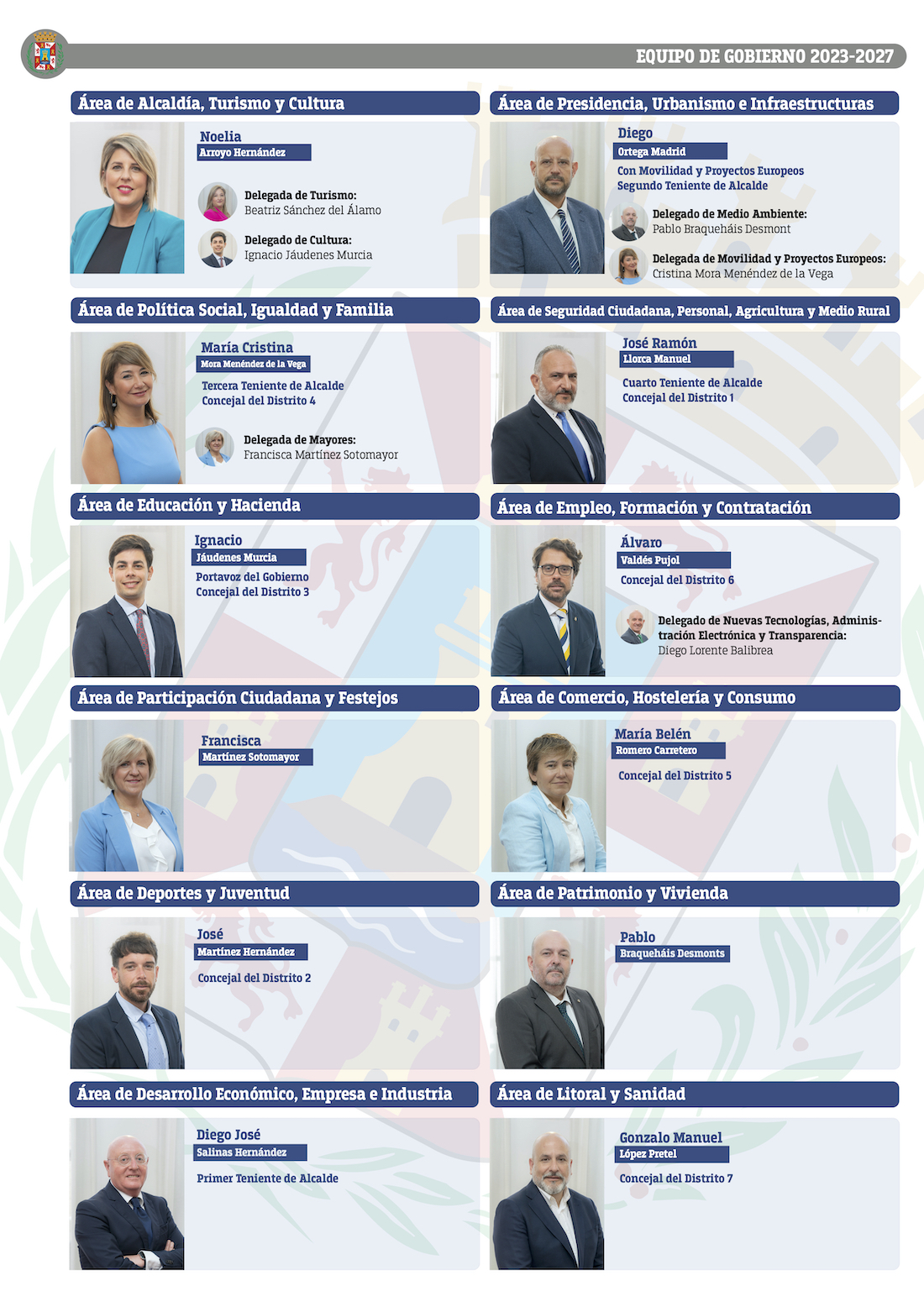 Por lo que respecta a la nueva estructura del gobierno, se ha creado el Área de Litoral, que estará a cargo de Gonzalo López Pretel, que se encargará de la gestión del mantenimiento de las playas, la supervisión de los servicios a los bañistas y la coordinación de los servicios municipales en las poblaciones de costa del municipio.