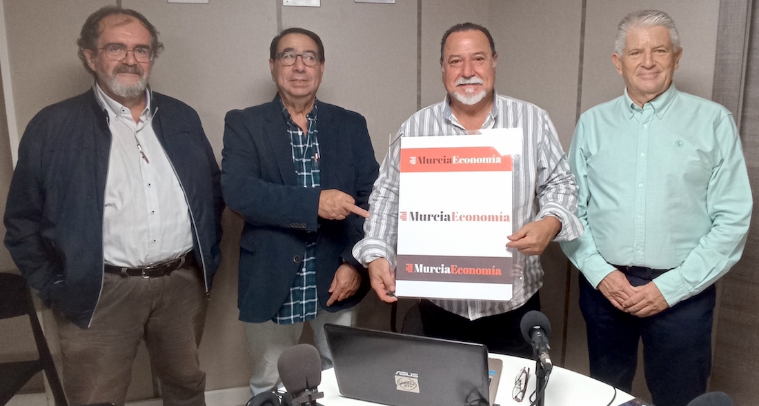 La emisora local pasó hace unos años a denominarse como Onda Cartagena y ahora inicia una nueva época como Murcia Economía Radio. Esta semana ha sido la primera bajo la nueva denominación. En la foto se ve a Pepe Cámara con el cartel entre Antonio Cámara y Alonso Gómez López, además del periodista Carlos Illán Ruiz, en una de las tertulias de ‘Caminando por la vida’, espacio que se emite de lunes a viernes de 8 a 10 horas de la mañana.