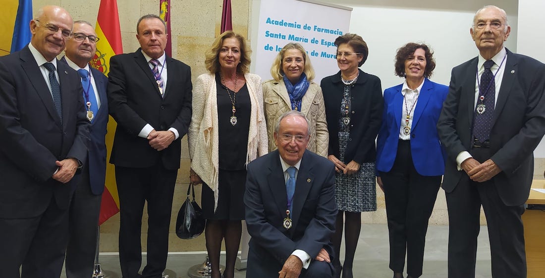 Francisco José Franco Martínez, a quien se observa en tercer lugar por la izquierda del lector, ha tomado posesión como académico de la Real Academia de Farmacia ‘Santa María de España’ de la Región de Murcia.