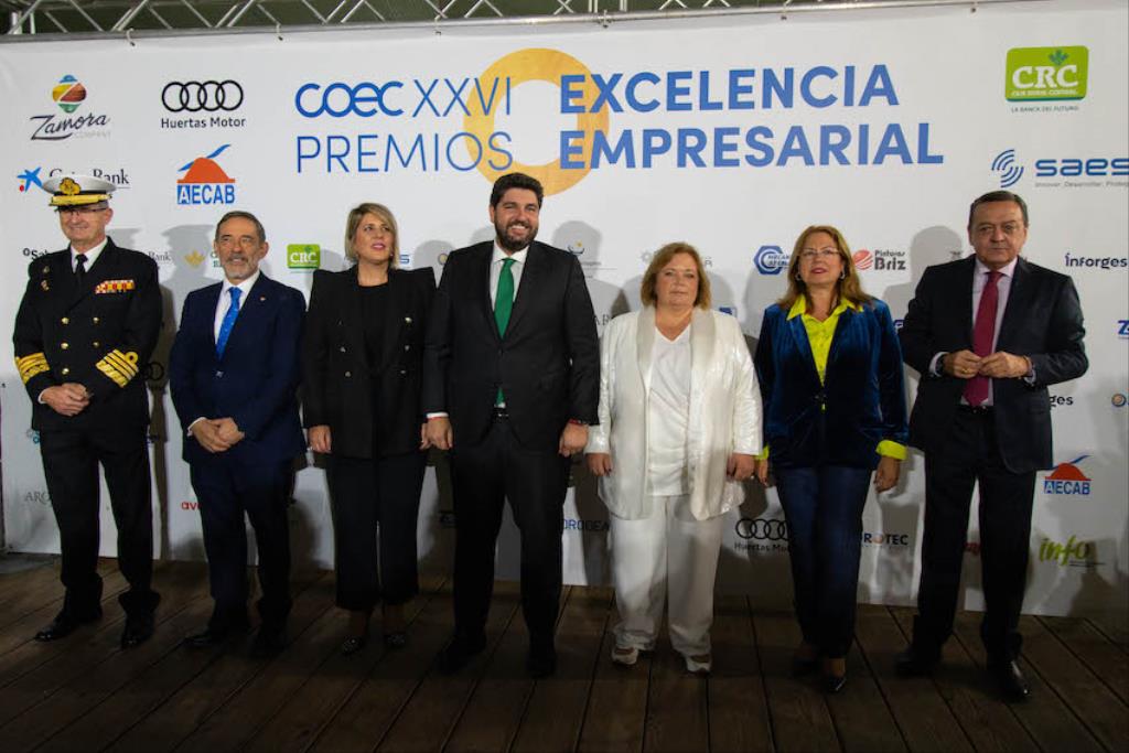 López Miras informó de estos datos durante la entrega de los XXVI Premios de Excelencia Empresarial 2023 de la Confederación Comarcal de Organizaciones Empresariales de Cartagena (COEC), donde destacó que “frente al hostigamiento de otros a quienes generan riqueza y empleo, el Gobierno regional ha captado para la comarca de Cartagena, en los últimos cuatro años, 35 proyectos que han supuesto una inversión superior a los 515 millones de euros”.