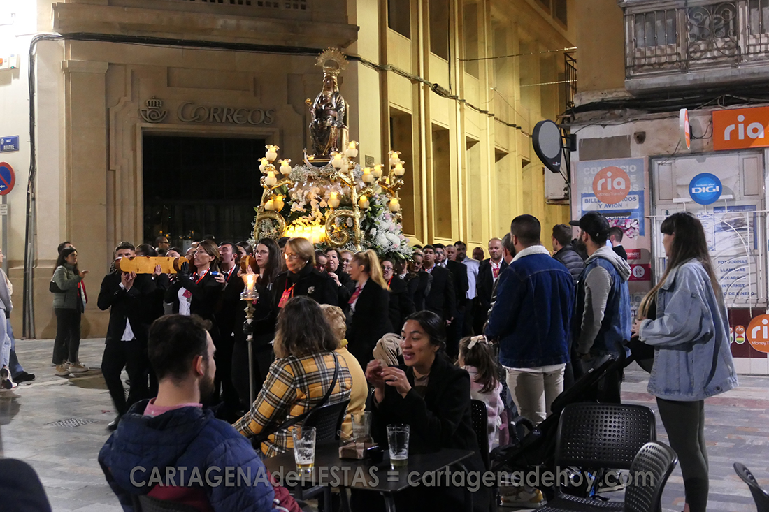 Fueron horas singulares en el casco antiguo de Cartagena, pues coincidieron casi en el mismo espacio la manifestación contra Pedro Sánchez con la gala musical de los modernistas, además del recogimiento de la procesión de la Virgen del Rosell con el ambiente del Mercado Medieval. En Cartagena hay ‘muchos mundos’.
