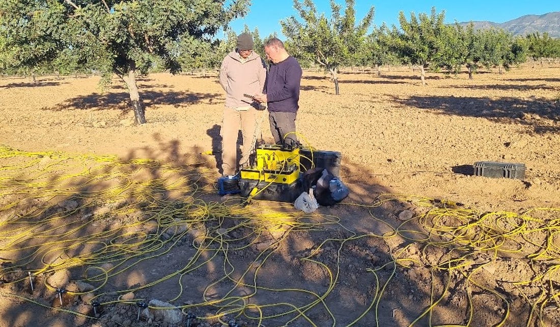Los investigadores, del grupo Geofísica Aplicada Somera,  incorporarán las próximas semanas un georradar para medir la distribución de las raíces del arbolado y concretar así  las zonas de riego y si hay diferencia entre los diferentes tratamientos de riego establecidos. Se trata de una tecnología novedosa en la medición de la humedad en estos cultivos, señalan los investigadores Pedro Martinez Pagán y Marcos Martínez Segura.
