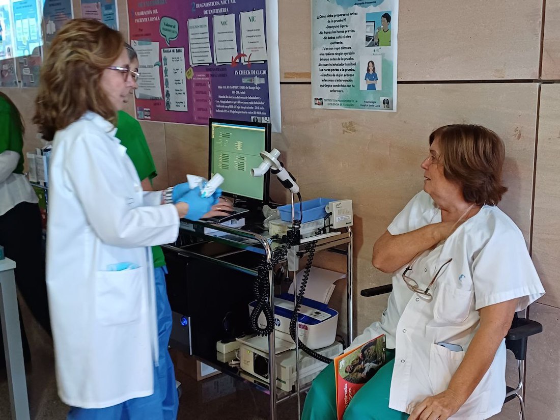 Profesionales del Servicio de Neumología del Hospital General Universitario Santa Lucía están realizando esta mañana, en la zona de consultas externas del Hospital Santa Lucía, mediciones de la función pulmonar de todos aquellos pacientes que lo han pedido.