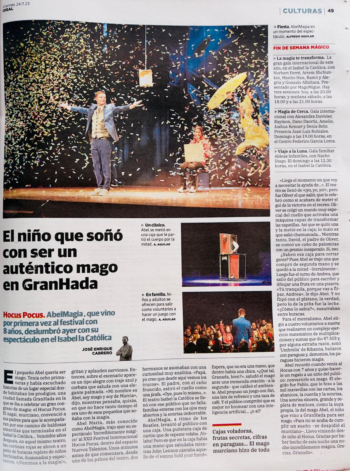 Abelmagia ha representado a la Región de Murcia en la 22 edición del 'Festival internacional de magia de Granada', un consolidado certamen conocido por 'GranHada' que acoge cada año a los mejores ilusionistas del mundo.