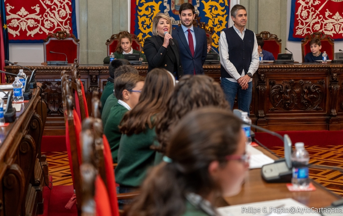 Los representantes municipales infantiles, elegidos previamente tras un proceso electoral en sus centros escolares, han debatido sobre el artículo 45 de la Constitución, dedicado al Medio Ambiente. Los alumnos se han organizado en cuatro grupo municipales: SJV (Santa Joaquina de Vedruna); CCT (Carmelitas Cartagena); PUCM (Por Una Cartagena Mejor) y PISF (Partido Isidoro Santa Florentina).