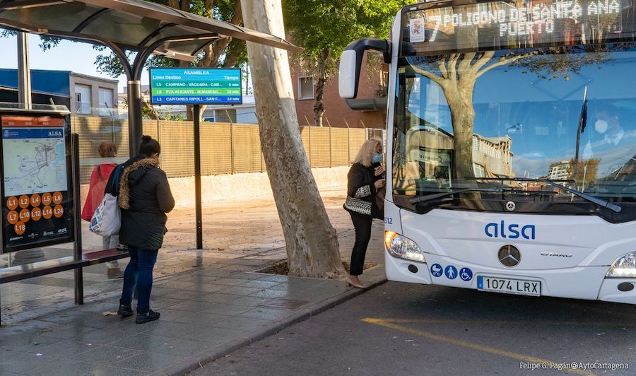 El Ayuntamiento de Cartagena está aportando dinero este año para bonificar el precio del billete de autobús junto con el Estado. Así, el viaje del bono general cuesta 30 céntimos; el de jubilados, 20 céntimos; y el de familias numerosas, 10 céntimos.
