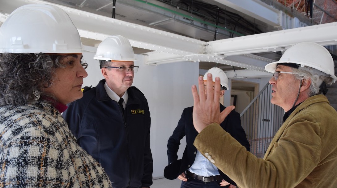La Rectora y el Almirante han visitado el inmueble cuya rehabilitación está ejecutada al 87% y está previsto que se concluya en marzo para que lo utilicen el próximo curso los estudiantes la Escuela de Arquitectura y Edificación. Imágenes adjuntas del director de la obra, José Manuel Chacón, explicando el estado de la ejecución del proyecto.