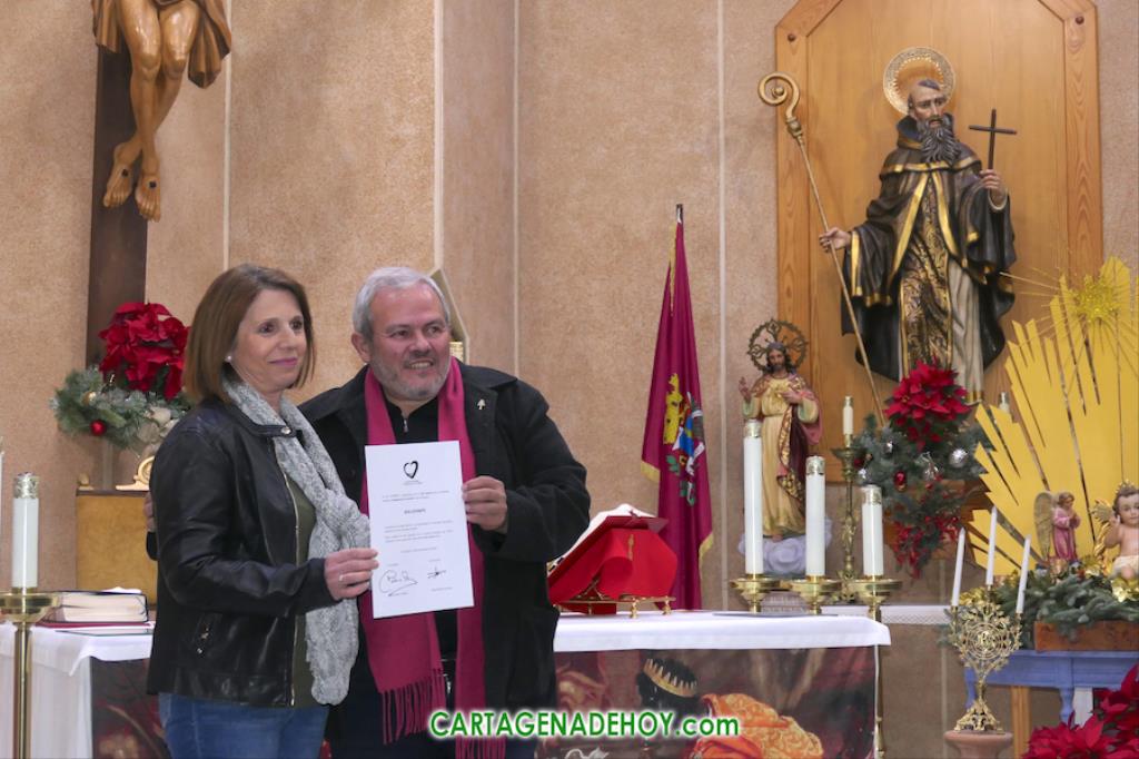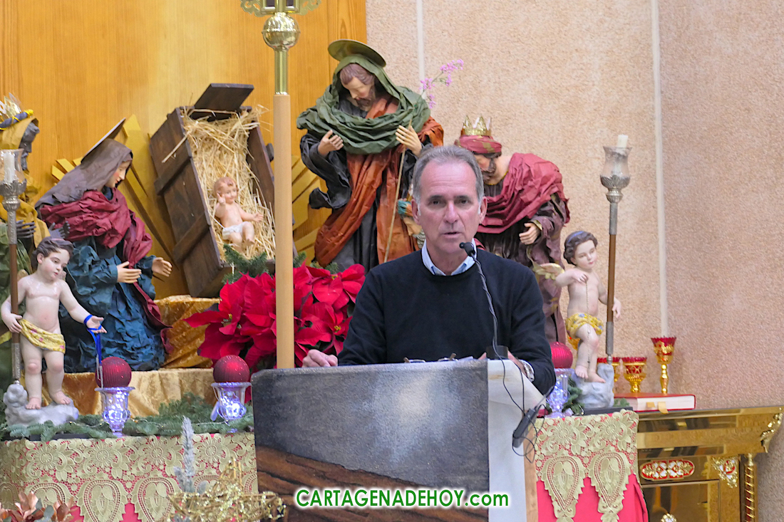 Lázaro Gomariz, capellán de la asociación, apuntó que el amor "explica el nacimiento de Jesús y también el nacimiento de 'Cartagena por la Caridad', que después se ha ido extendiendo", invitando a continuación a todos "a hacer cada año más bella a Cartagena haciendo caridad, pues no sólo beneficia a otros, sino que al que la ejerce se le abre el corazón", afirmó. Concluyó pidiendo que se deje de sufrir por guerras o terrorismo.