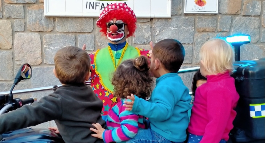 Dos agentes que pertenecen a los cuerpos de Policía Local de Cartagena y Policía Nacional visitaron esta Navidad el Hogar de Infancia de la ciudad caracterizados como payasos para animar las fiestas a los pequeños.
