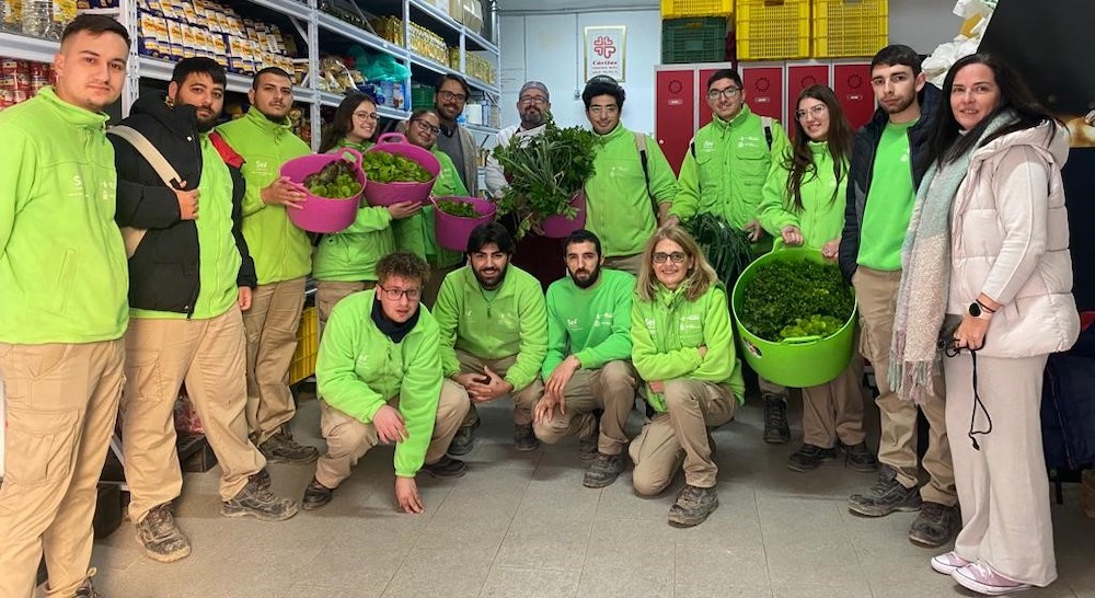 Jóvenes trabajadores del programa de formación dual “economía circular” han hecho entrega en el comedor solidario de Cáritas de productos elaborados de manera ecológica y sostenible (lechugas, apio, escarola, ajos tiernos…) recién cosechados y cultivados por ellos mismos, en la especialidad formativa “Actividades Auxiliares en Agricultura, nivel 1” para proporcionar un valor añadido al ciclo de vida de los productos cultivados, generando competencias personales más comprometidas y solidarias, muy valoradas en los nuevos mercados de trabajo.