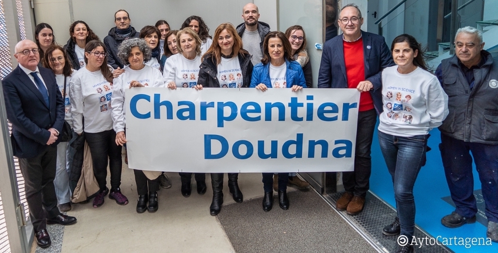 En esta línea, el teniente de alcalde, Diego Salinas, ha participado en la colocación de la placa con los nombres de Emmanuelle Charpentier y Jennifer Doudna, químicas ganadoras de un Nobel por desarrollar un método para editar el genoma, en la fachada del edificio de I+D+i de la Universidad Politécnica de Cartagena. Sus nombres ya se pueden leer en el inmueble, tras una votación ciudadana que las eligió como Mujeres Científicas del Año.