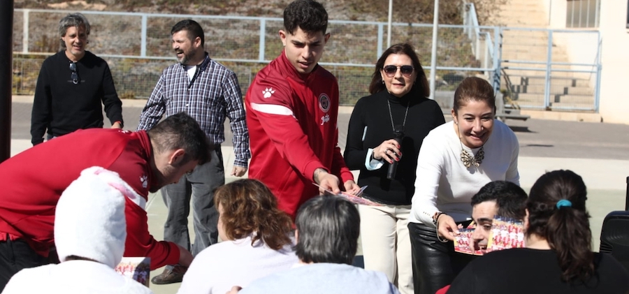 Jugadores del equipo de fútbol sala Jimbee Cartagena han visitado, junto a la concejal de Política Social, Cristina Mora, el centro para personas con discapacidad del IMAS situado en barriada cartagenera.