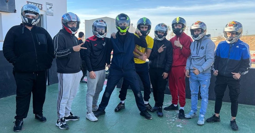 En la foto, grupo de jóvenes antes de montarse en los vehículos kart