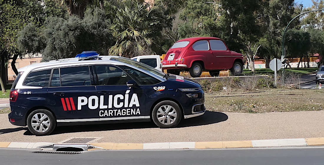 Durante un rato en la mañana del sábado, la plaza de 'Las Seiscientas', donde luce un histórico Seat 600, tuvo dos vehículos con la presencia de una patrulla de la Policía Local.