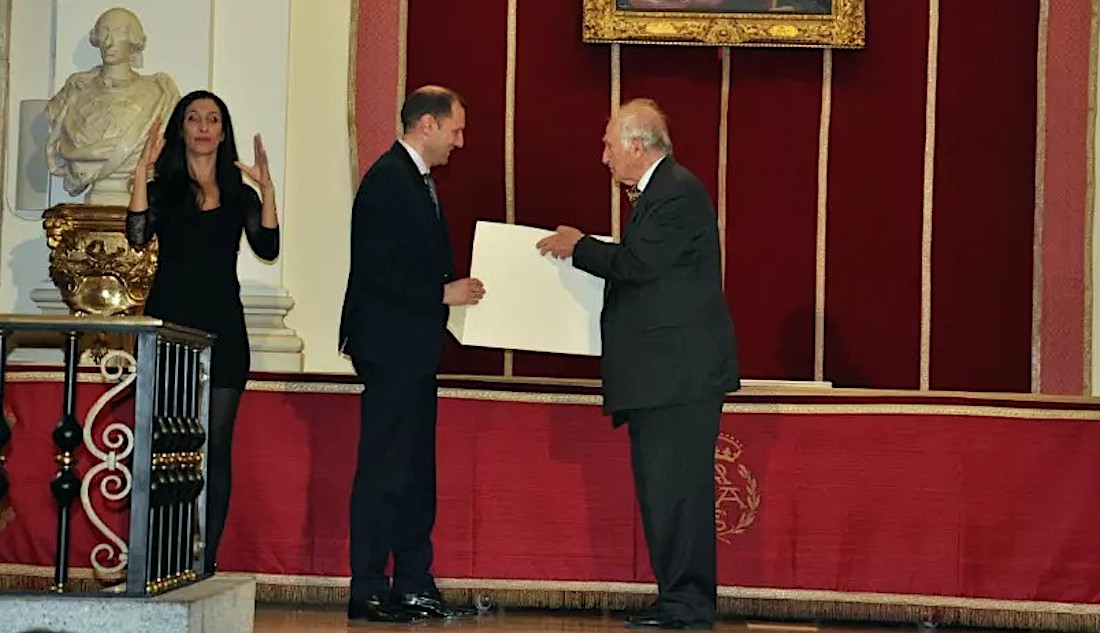 El colectivo cartagenero ha sido galardonado con el 'Premio Foro España a los falores de la Hispanidad' por parte del Foro España de la Solidaridad y el Progreso, en su tercera edición. En la imagen, su presidente, Ángel Benzal, recoge el galardón de manos de Inocencio Arias, embajador de España en la ONU.