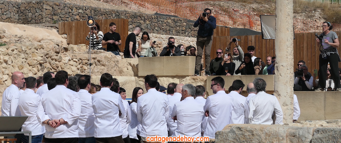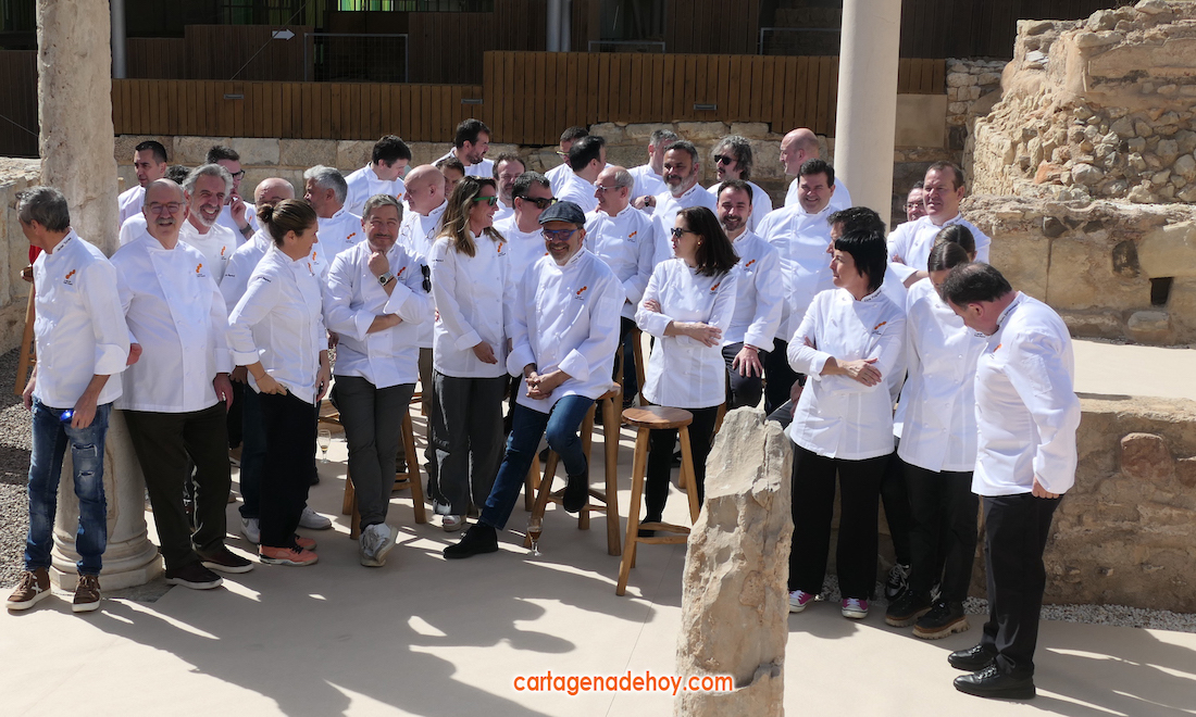 Cocineros como Ágnel León, Elena Arzak, Martín Berasategui, Joan Roca, Javier Torres, Fina Fuigdevall, Pablo González Conejero, Pepe Solla, Dani García y la fuentealameña- María Gomez, entre otros, han compartido un encuentro informal esta mañana en el yacimiento de edificaciones romanas que en la época romana se levantaron en torno a una de las principales vía de Carthago Nova, el Decumano. Mientras se han saboreado cinco variados manjares elaborados por María Gómez, se han sucedido infinidad de tertulias en un marco que ha reflejado el "gran momento de la gastronomía de nuestro país, que vive un momento de esplendor", según han expresado bastantes de los cocineros presentes.