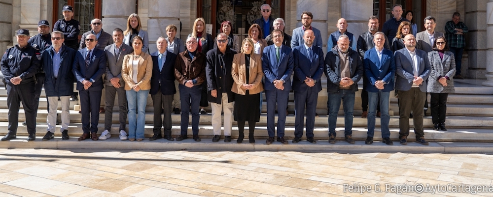 El minuto de silencio también ha contado con la presencia de los tenientes de alcalde Diego Salinas, Diego Ortega, José Ramón Llorca y Cristina Mora. Así como los portavoces de los grupos municipales Jesús Giménez, Pedro Contreras; el vicepresidente de la Autoridad Portuaria, Pedro Pablo Hernández; los concejales de gobierno Belén Romero, Álvaro Valdés, Beatriz Sánchez y Diego Lorente; y los ediles de la oposición Mercedes Graña, Juan José López, Enrique Pérez, Manuel Torres e Isabel Andreu.