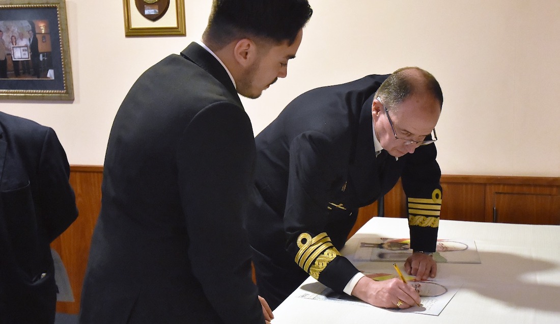 Finalmente, la gala terminó con la entrega a cada uno de los cien asistentes de una lámina del retrato-caricatura elaborado por Quico Bueno que el propio De la Puente fue firmando una a una para que tuvieran un grato recuerdo de la labor que ha realizado durante esto cuatro años como Almirante del Arsenal de Cartagena.