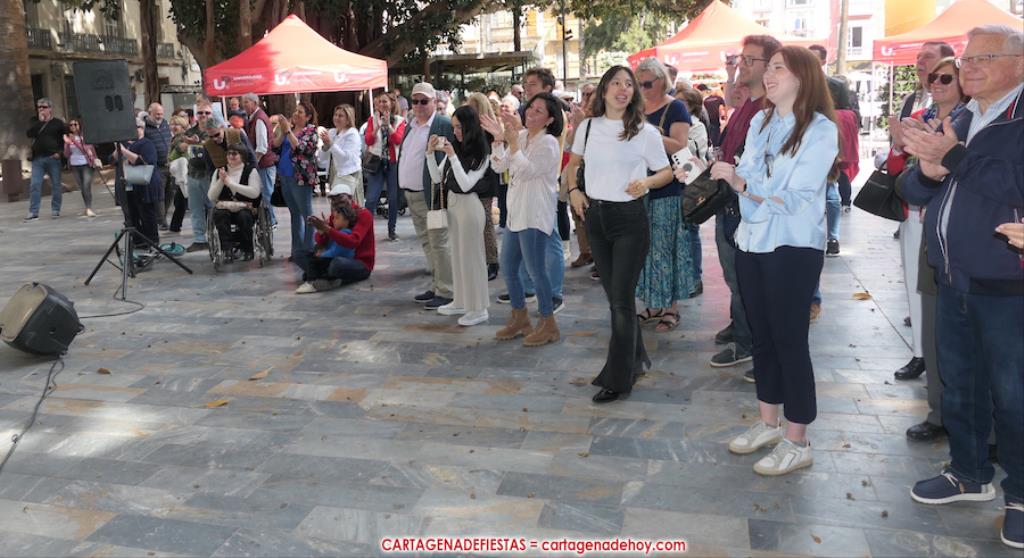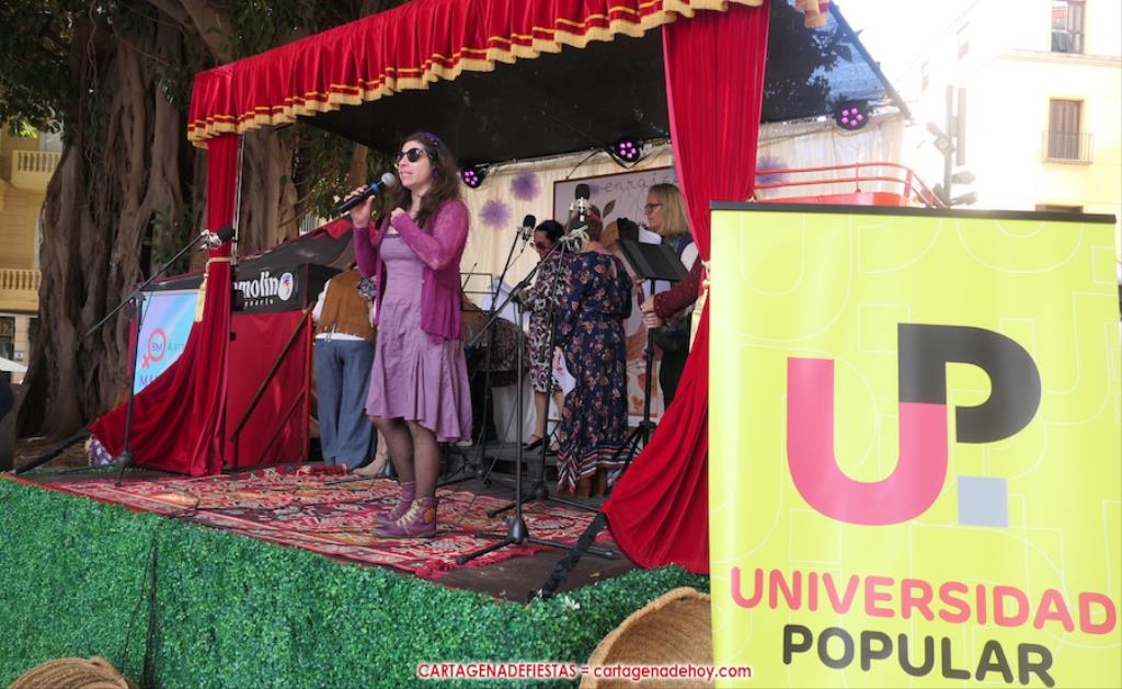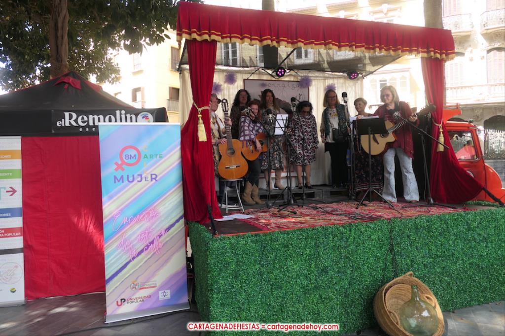 La Universidad Popular de Cartagena ha llevado a cabo una exhibición de sus talleres en un encuentro con el arte que se ha desplegado en la glorieta de San Francisco y que ha estado enriquecido por las actuaciones ofrecidas desde el escenario móvil de 'El remolino'.