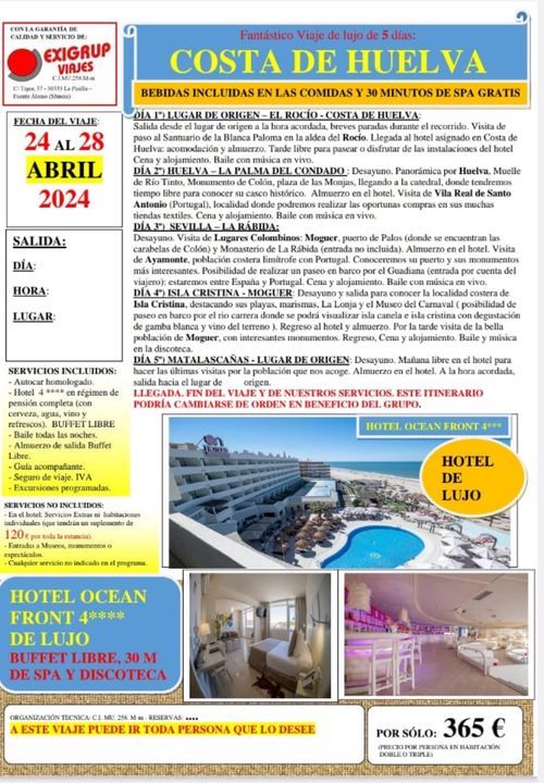 El precio por personas es de 365 que incluye viaje, hotel en pensión completa, seguro de viaje, excursiones, etc. Se pueden apuntar personas no asociadas al colectivo cultural.