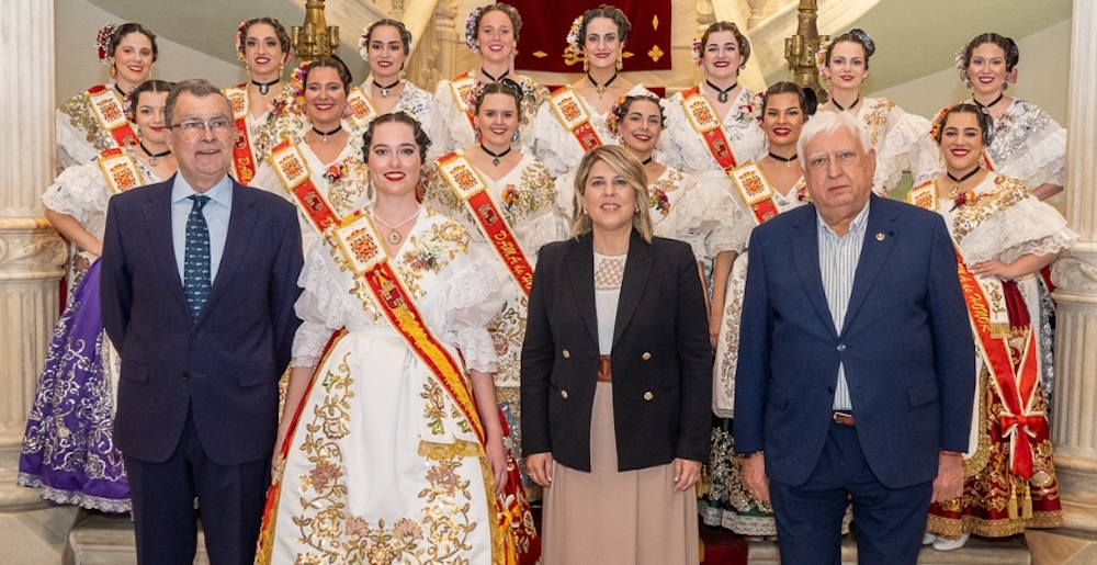 La alcaldesa de Cartagena, Noelia Arroyo, y el alcalde de Murcia, José Ballesta, han presidido hoy la recepción a la Reina de la Huerta 2024, Isabel María García, y su corte de Damas de Honor, que ha tenido lugar en el Palacio Consistorial de la ciudad portuaria.