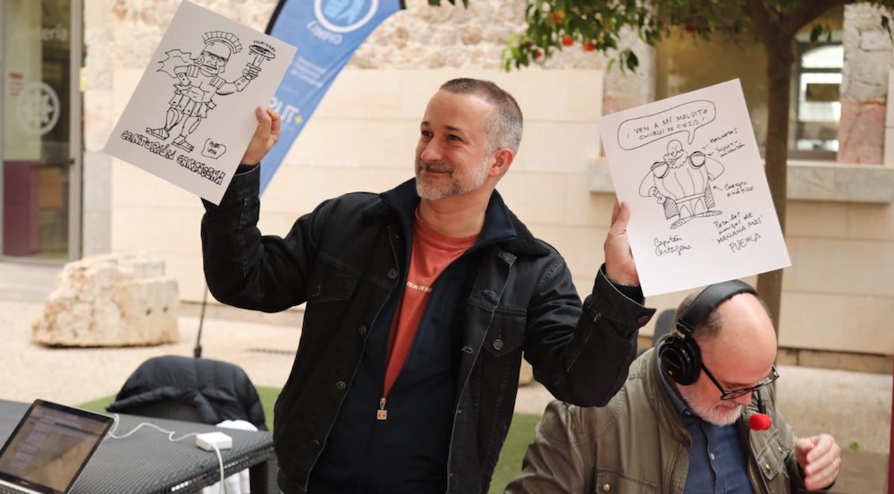El espacio radiofónico 'Mañana más', de RNE, que se ha emitido esta mañana desde Cartagena, ha contado con los humoristas gráficos José Manuel Puebla y Pedro Vera, quienes han dibujado cómo sería para ellos un superhéroe de esta tierra.