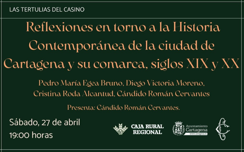 Este sábado 27, a las 19:00, en la Sala de Columnas del Casino, expertos en Historia Contemporánea de las Universidades de Murcia, La Laguna y la UNED se reunirán para compartir sus reflexiones sobre los aspectos más relevantes que han moldeado el devenir de Cartagena y su comarca.