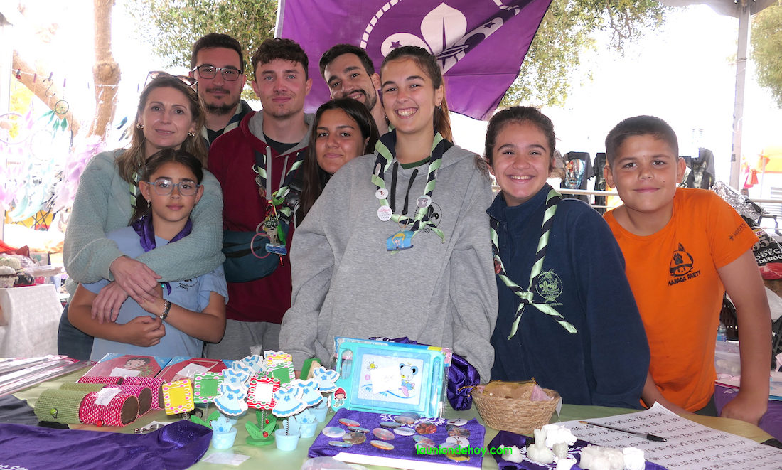 Roche acogió ayer la décimo novena edición de su mercado tradicional y feria de artesanía, que atrajo a cientos de visitantes, bastantes de ellos del municipio de Cartagena, como estos jóvenes del grupo scout 'San Roque' de Alumbres, que montaron un estand para divulgar su labor y conseguir fondos para llevar a cabos las actividades.
