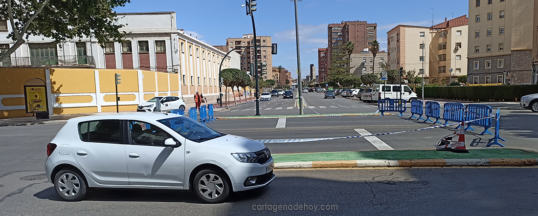 El pasado fin de semana se produjo un accidente de tráfico en este cruce entre la avenida de Reina Victoria con la calle Wssell de Guimbarda en Cartagena, que supuso el derribo de una farola, que ha sido retirada del lugar. Este área quedó acotada con una cinta y los vecinos se preguntan si es por la colisión o es que se prepara la construcción de una rotonda.