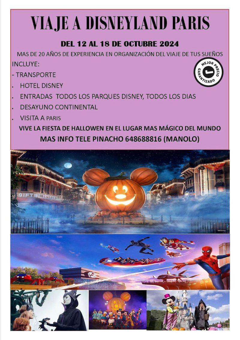 La ADC El Pinacho de Santa Lucía cambia este año las fechas del habitual viaje organizado a tierras francesas para disfrutar del mundo de Walt Disney, pues en lugar de hacerlo en Navidad lo adelanta del 12 al 18 de octubre para vivir la ‘Fiesta Halloween’ que se monta en el parque galo.