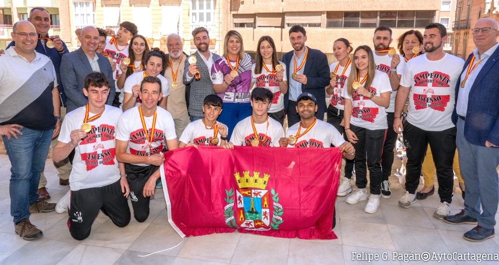 El Bádminton Cartagena celebra en el Palacio Consistorial su ascenso a División de Honor. La alcaldesa Noelia Arroyo ha recibido este jueves, 16 de mayo, a jugadoras y jugadores, junto a responsables del Club que esta temporada ha conseguido un hito histórico para el deporte cartagenero. Junto a ella ha estado también el concejal de Deportes, José Martínez; el director general de Deportes de la Comunidad Autónoma, Francisco Sánchez; y el presidente de la Federación de Bádminton, Pedro Caparrós.