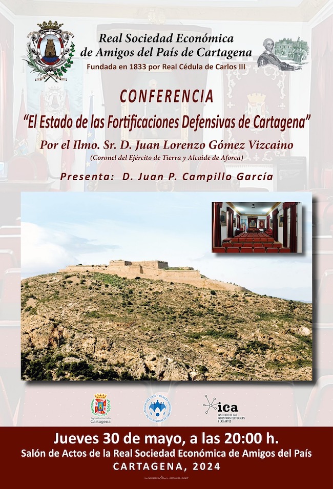 Es la temática sobre la que versará la conferencia que ofrecerá hoy Juan Lorenzo Gómez Vizcaíno, corone del Ejército de Tierra y alcaide de Aforca (Asociación de Fortalezas y Castillos de Cartagena), a las 20 horas, en el salón de actos de la Real Sociedad Económica de Amigos del País, en la calle del Aire, con entrada gratuita.