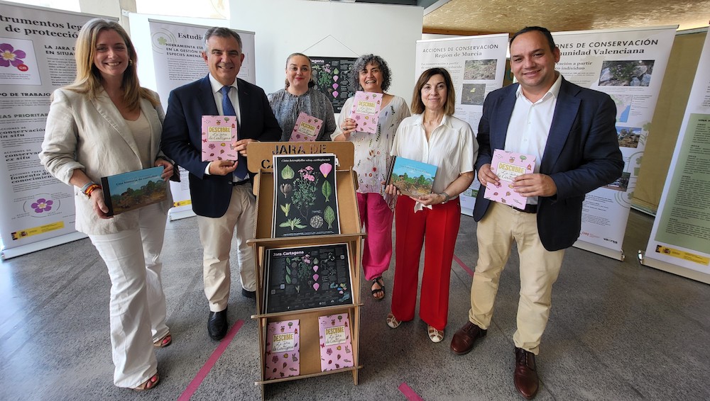 Las actuaciones realizadas centran la exposición ‘La jara de Cartagena. La recuperación de una especie en peligro crítico de extinción’, inaugurada hoy en el CIM por la rectora de la UPCT, Beatriz Miguel, y el consejero de Medio Ambiente, Universidades, Investigación y Mar Menor, Juan María Vázquez.