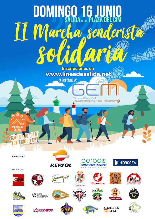 Diferentes clubes deportivos de Cartagena organizan el próximo domingo la segunda edición de la marcha 'Camina con protección 2024', en colaboración con el Ayuntamiento de Cartagena y Grupo Español Multidisciplinar de Melanoma (GEM) a beneficio de un proyecto de investigación en la lucha contra el melanoma.