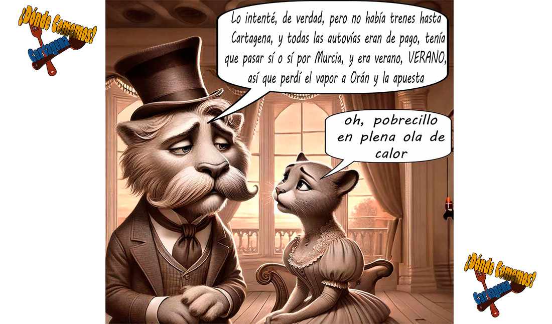 Imaginemos que Willy Fog, en su viaje para dar la vuelta al mundo en 80 días, decide pasar por Cartagena. Con la situación actual, hubiese supuesto un importante retraso en sus cálculos. Así lo refleja esta simpática caricatura del portal ‘¿Dónde comemos?, Cartagena’, que dirigen Aida Belmonte y Enrique Costa.
