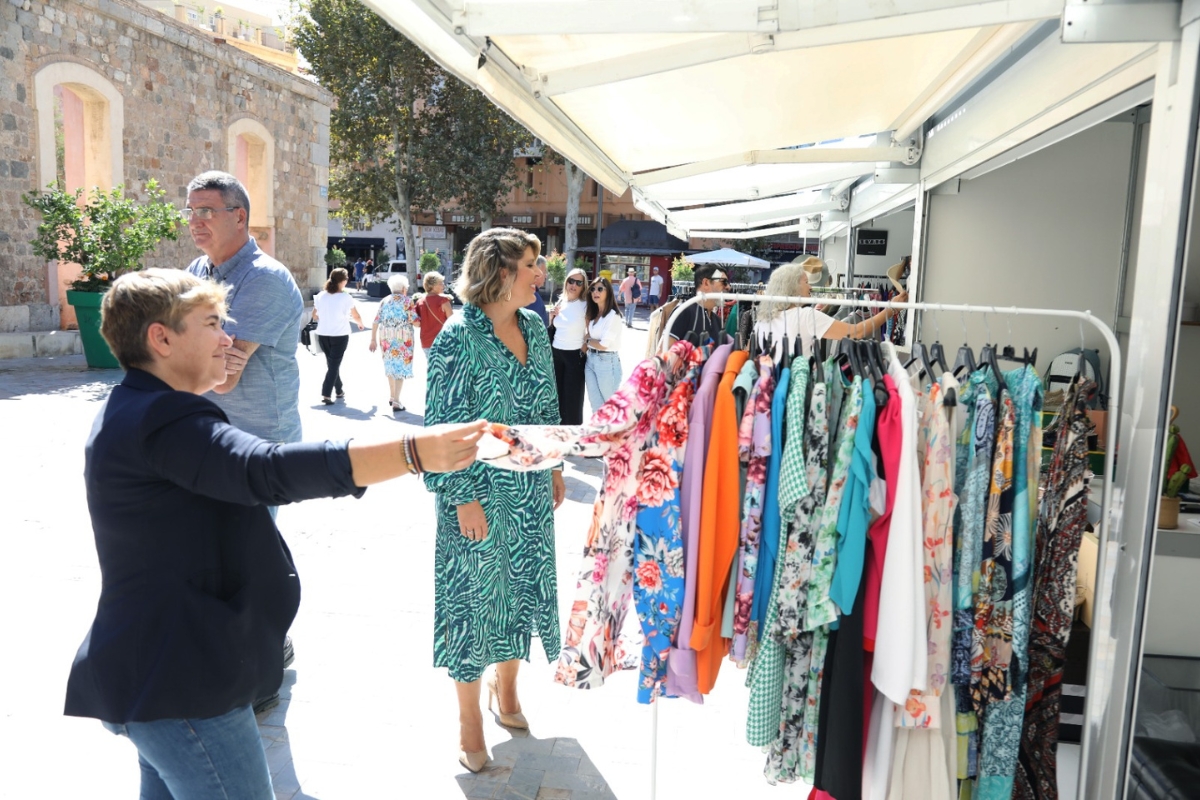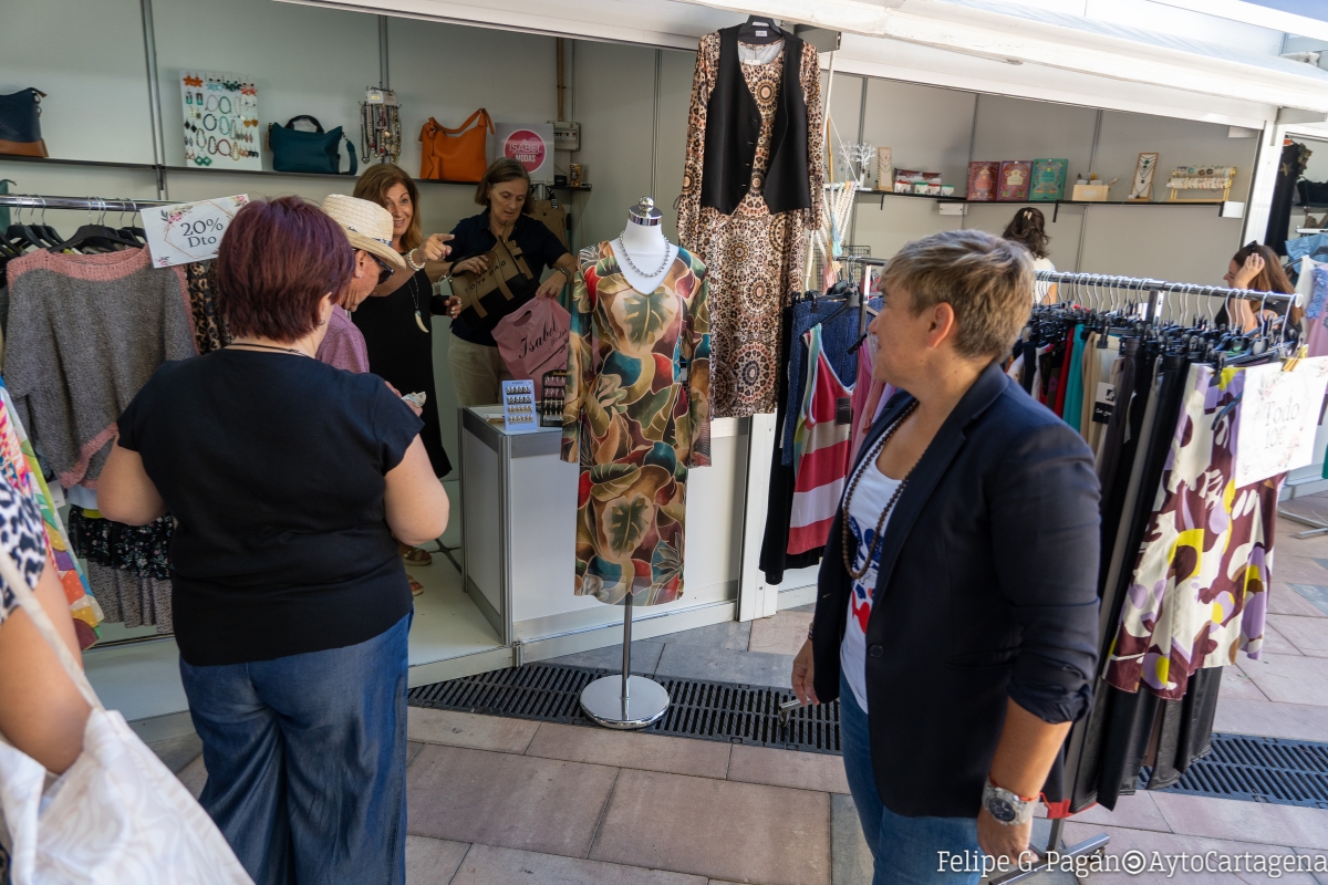La plaza Juan XXIII de Cartagena alberga hasta el domingo 6 de octubre la Feria Outlet con un total de 24 comercios que han instalado sus stands sin coste alguno gracias al Ayuntamiento y la aportación de la Comunidad Autónoma. La edil de Comercio, Belén Romero, ha participado este viernes en la inauguración de la Feria Outlet, que estrena ubicación en el casco histórico y ofrece descuentos de hasta el 70%.